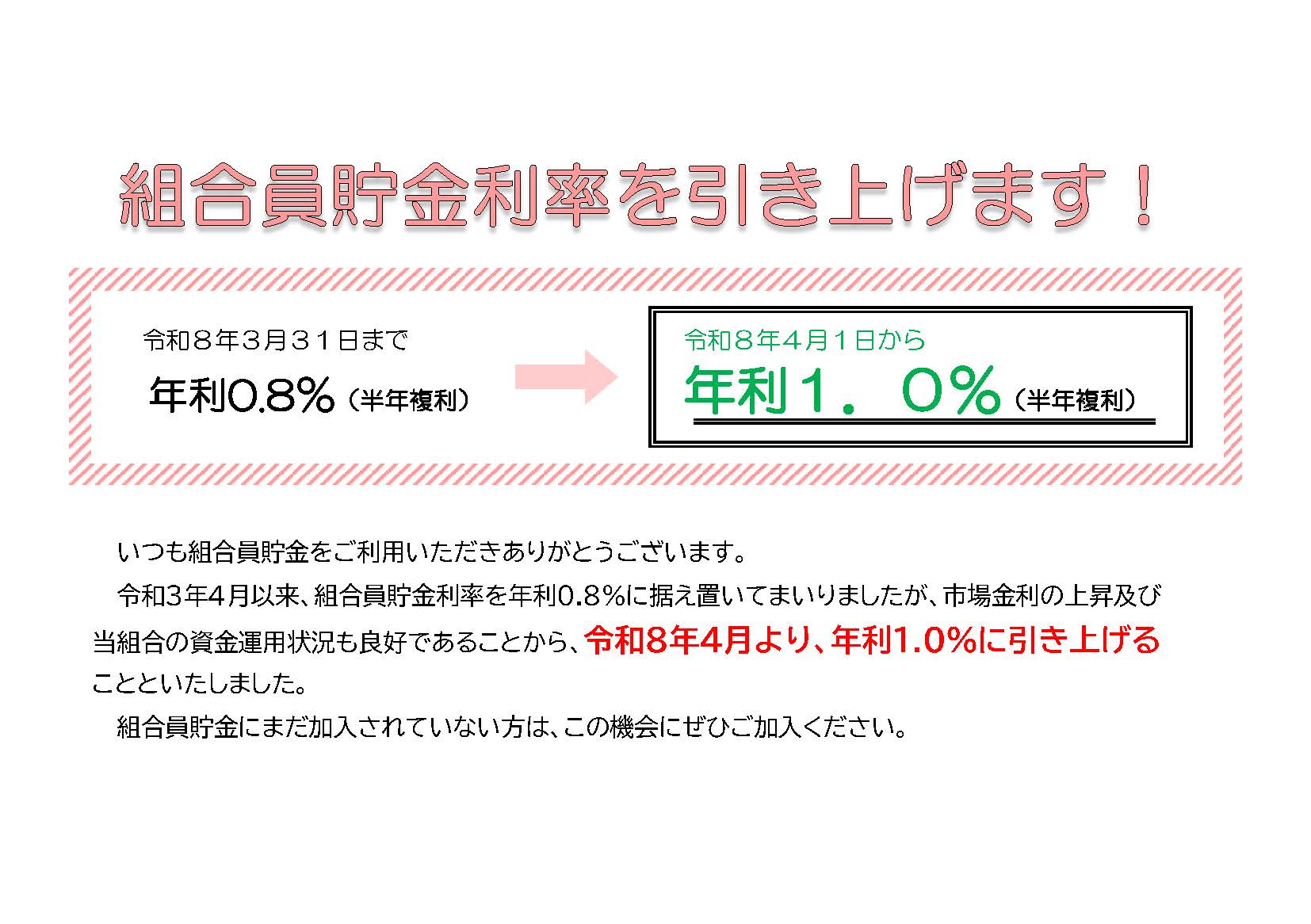 組合員貯金利率を引き上げます!